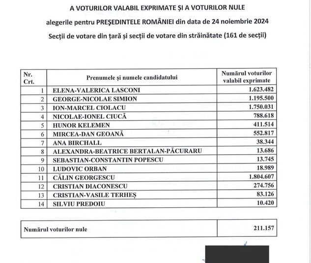 Din sursele Realitatea PLUS, se pare că ordinea candidaților s-a schimbat. Marcel Ciolacu ar fi trecut pe locul 2, iar Elena Lasconi pe 3. Ar mai fi de renumărat 650.000 de voturi din Diaspora, care ajung în țară pe 9 decembrie.