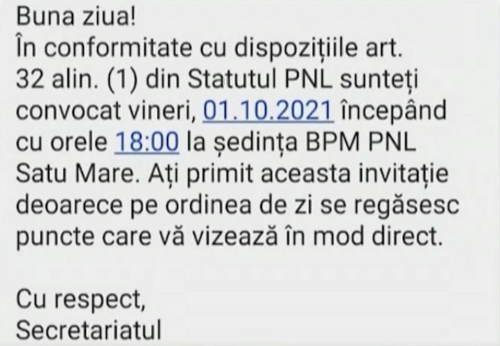Emil Șuhani, fost secretar general adjunct PNL Satu Mare, a fost anunțat că, pe 1 octombrie, e convocat la o ședință.