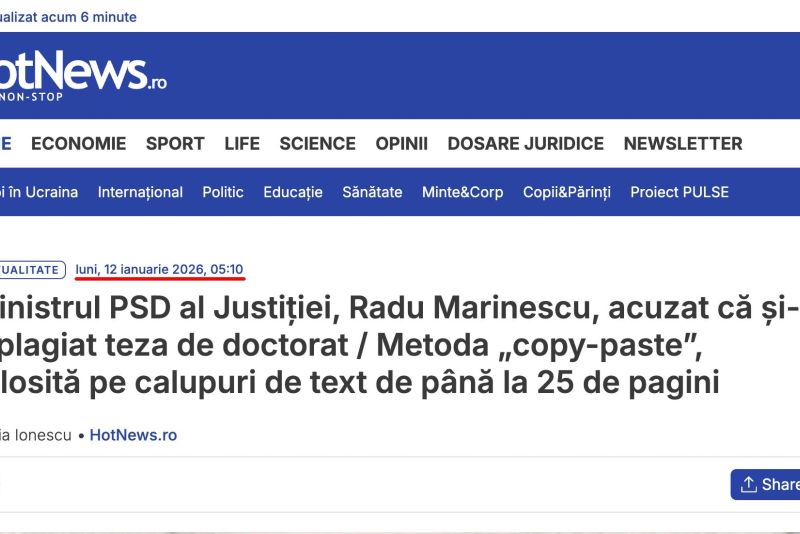 La ora 05:31 AM, în doar 31 de minute de la publicarea articolului din PressOne, Hotnews publică un nou articol amplu, documentat, o sinteză a scandalurilor de plagiat din guvernul României. Este o sinteză foarte bună, realizată în doar 31 de minute.