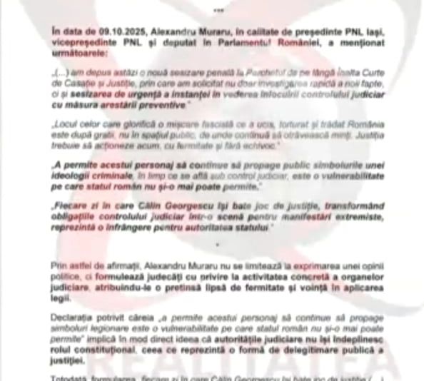 ULTIMA ORĂ: CĂLIN GEORGESCU A DEPUS PETIȚII LA CSM ÎMPOTRIVA LUI NICUȘOR DAN ȘI A LUI ALEXANDRU MURARU. ACUZAȚII GRAVE DE INGERINȚE ÎN JUSTIȚIE - DOCUMENTE